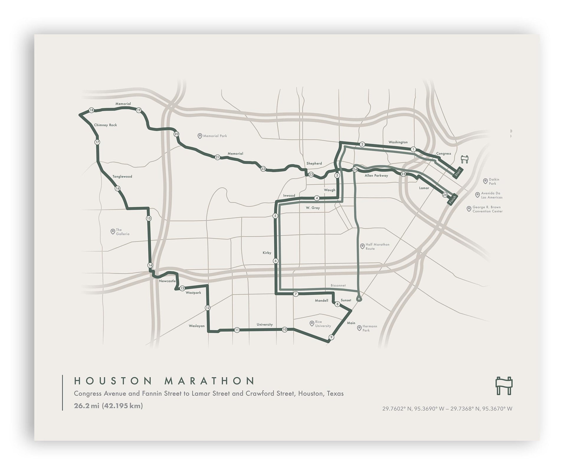 Houston Marathon Route Map Poster (Personalized)